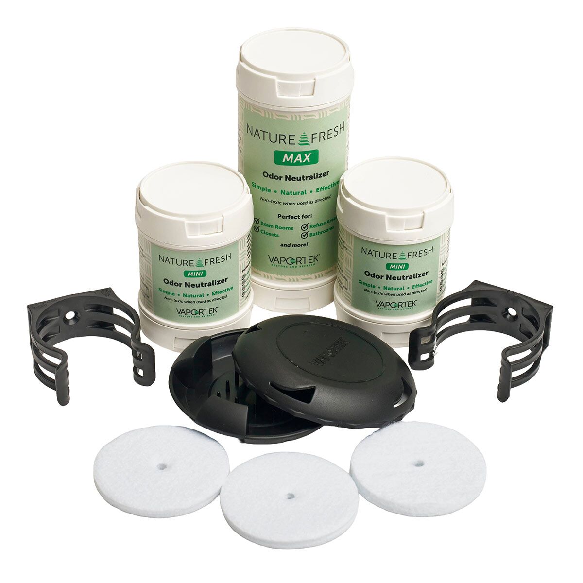 Vaportek Fresh and EZ 9-Piece Odor Control Combo Pack – Includes Nature Fresh Max, Nature Fresh Mini Canisters, EZ-Clips, EZ-Disks & EZ Twist Housing – Neutralizes Odors Without Ozone